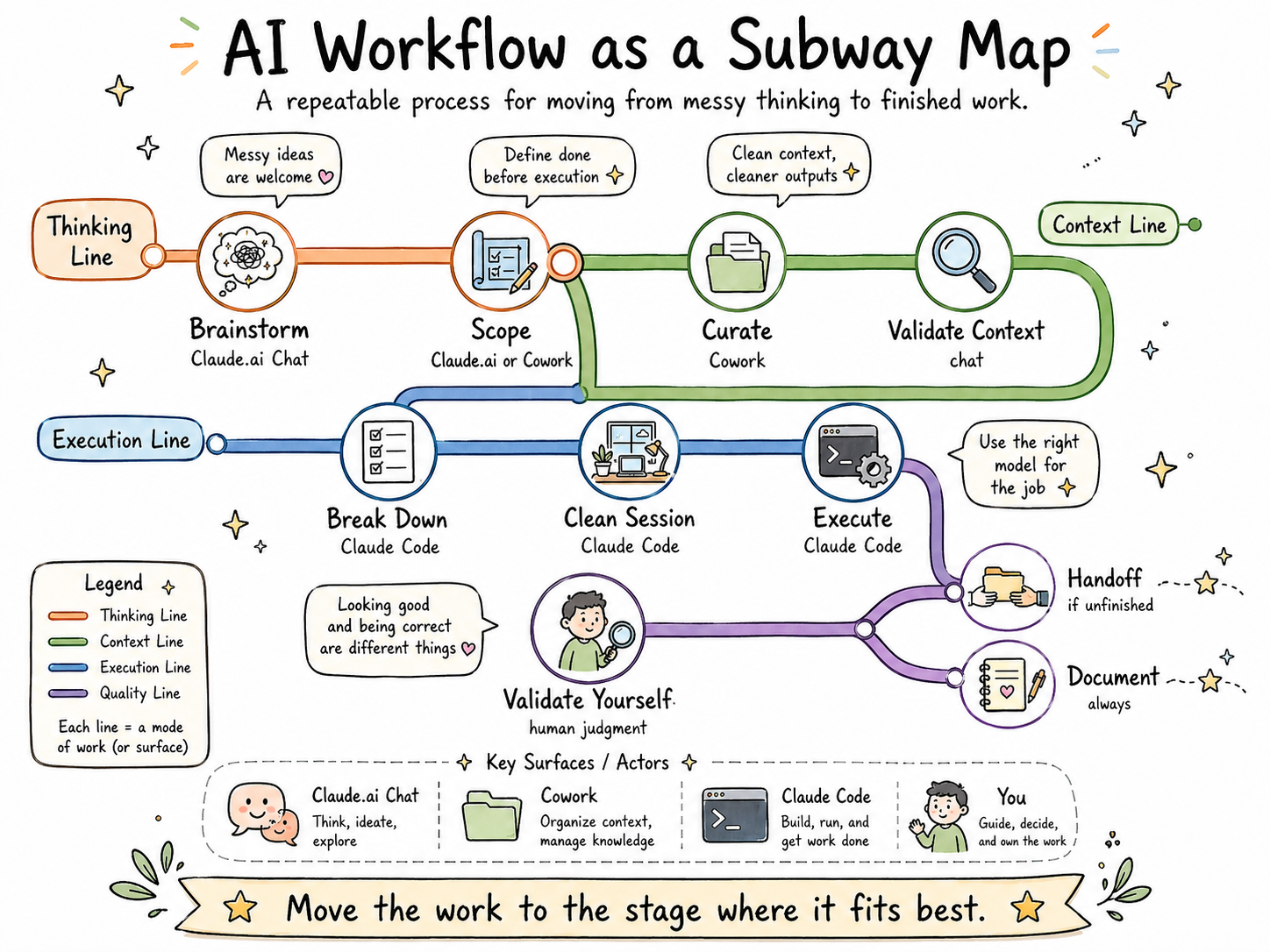 Fluency at the edge isn't about knowing every new feature the day it ships. It's about having a repeatable process for turning a messy idea into a well-executed output — one that uses each tool for what it's actually good at, conserves your tokens and attention, and gets better every time you run it.